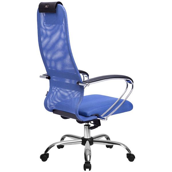 Кресло руководителя Метта SU-BK-8 PL, ткань-сетка синяя №23, спинка-сетка, топ-ган (101/001, 131/001)