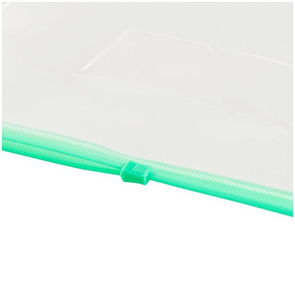 Папка-конверт на zip-молнии OfficeSpace А5, полипропилен, 150мкм, прозрачная, карман, молния зеленая