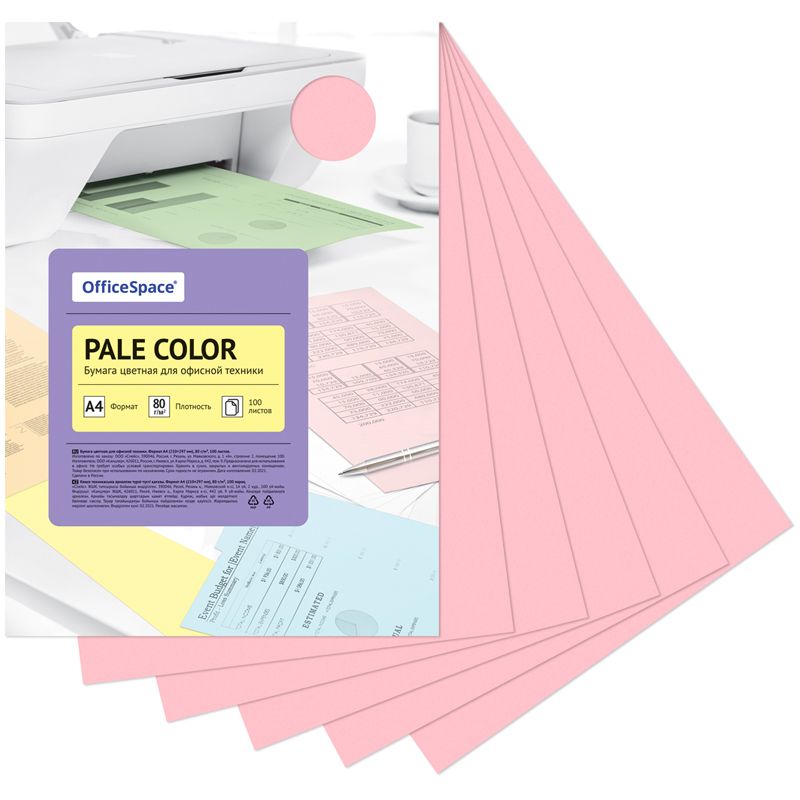 Бумага OfficeSpace "Pale Color" представлена в нежном розовом цвете, который ассоциируется с нежностью, элегантностью и креативностью.