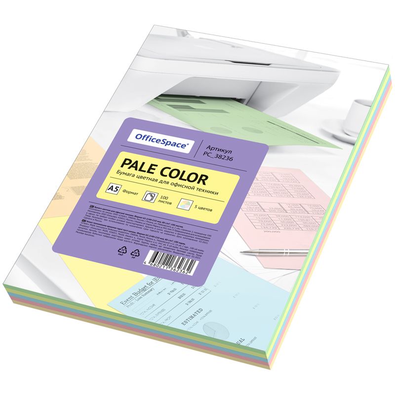 Бумага OfficeSpace "Pale Color" формата А5 представлена в пяти пастельных цветах, которые ассоциируются с легкостью, нежностью и креативностью.