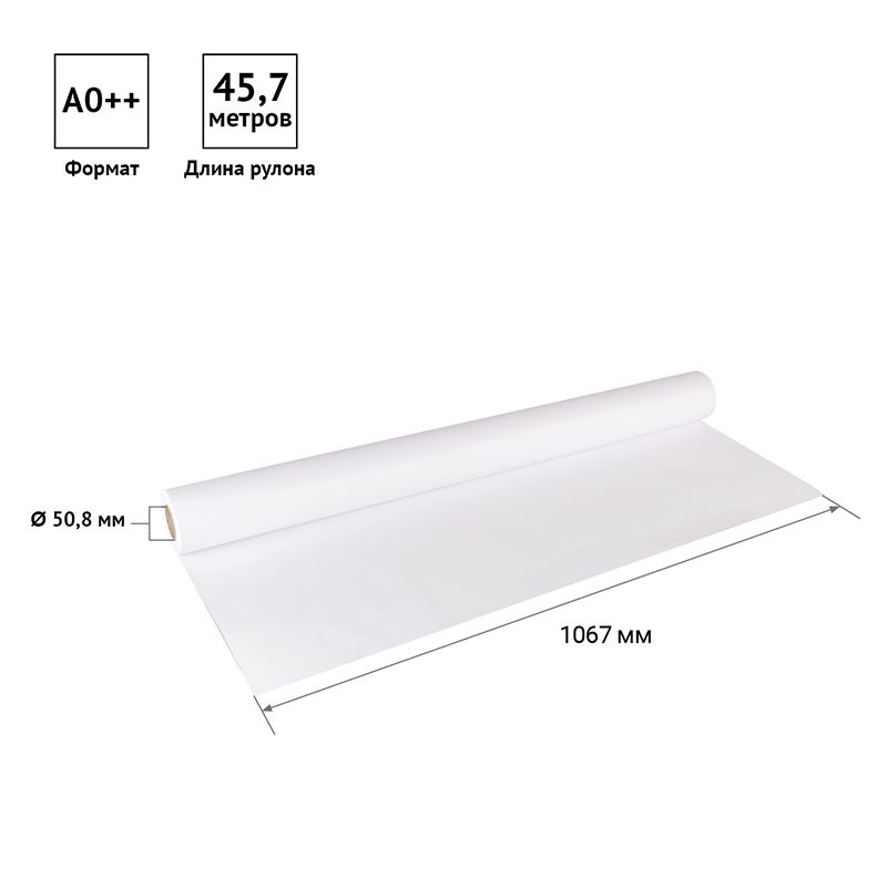 Бумага широкоформатная OfficeSpace, 1067мм*45,7м, 90г/м², вт. 50,8мм, для плоттеров