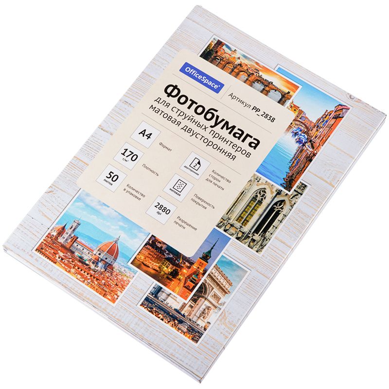 Фотобумага А4 для стр. принтеров OfficeSpace, 170г/м2 (50л) матовая двусторонняя