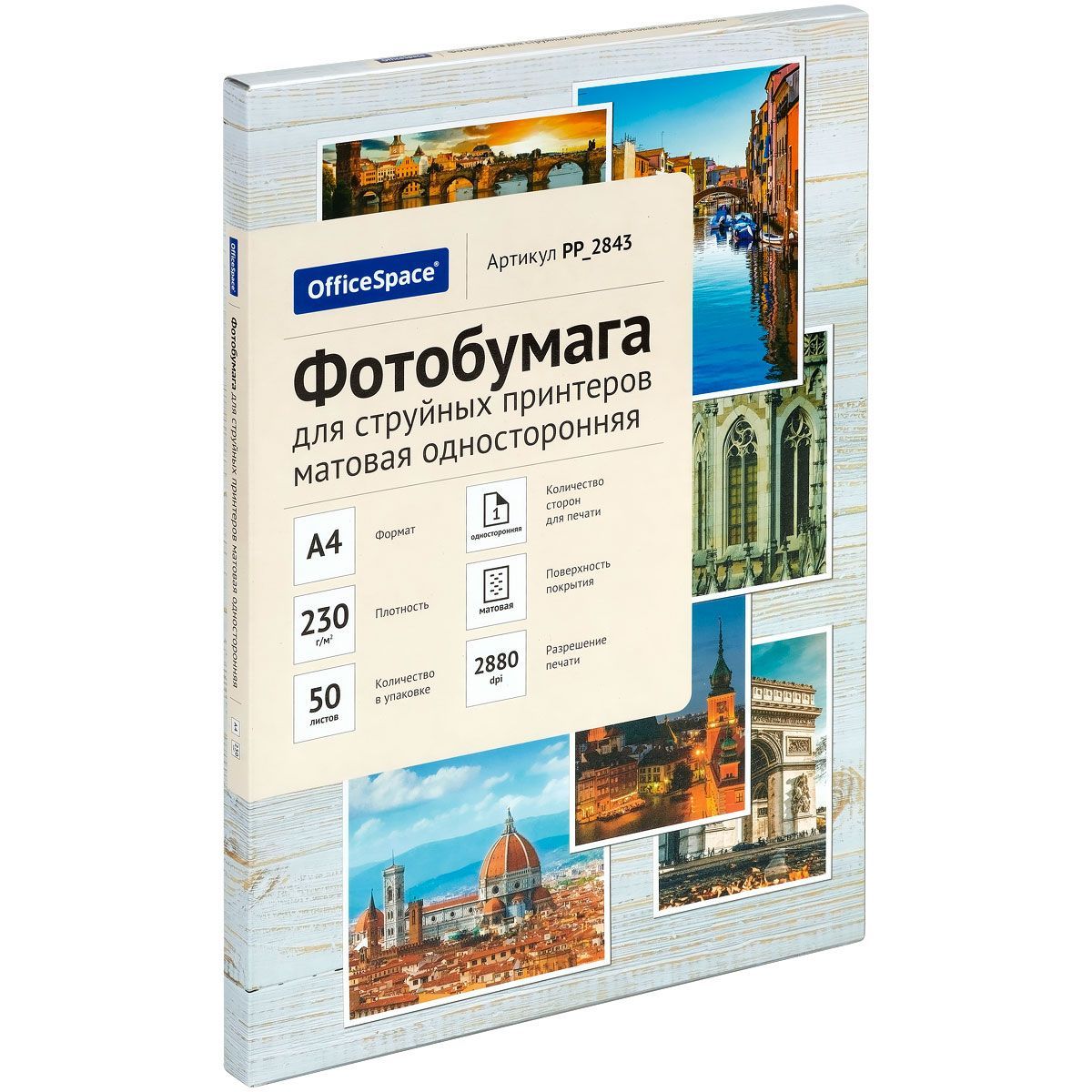 Фотобумага А4 для стр. принтеров OfficeSpace, 230г/м2 (50л) матовая односторонняя