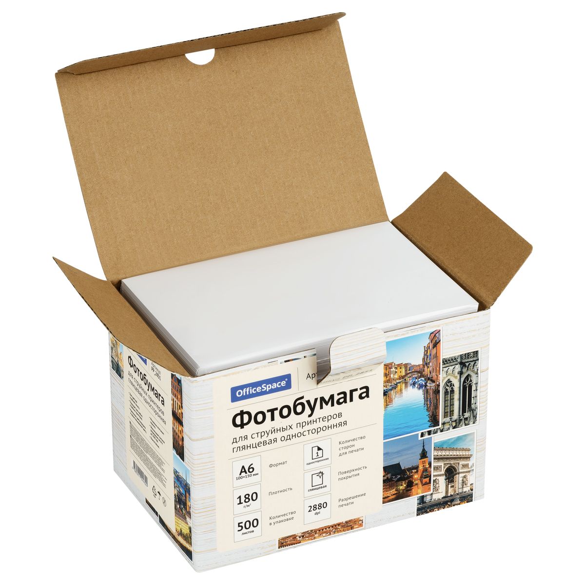 Фотобумага А6 (100*150) для стр. принтеров OfficeSpace, 180г/м2 (500л) глянцевая односторонняя