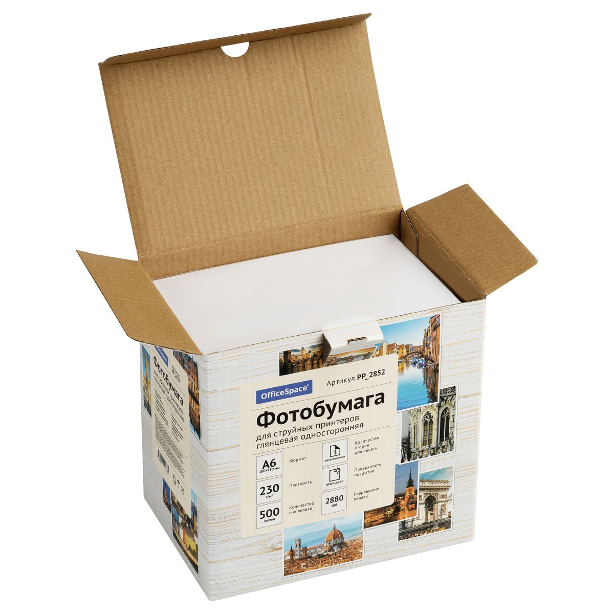 Фотобумага А6 (100*150) для стр. принтеров OfficeSpace, 230г/м2 (500л) глянцевая односторонняя
