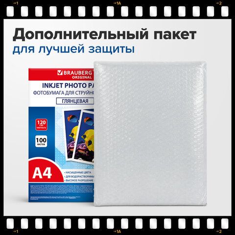 Фотобумага глянцевая, А4, 120 г/м2, односторонняя, 100 листов, ПАКЕТ, BRAUBERG ORIGINAL, 364412