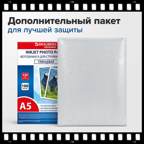 Фотобумага глянцевая, А5, 230 г/м2, односторонняя, 100 листов, ПАКЕТ, BRAUBERG ORIGINAL, 364410