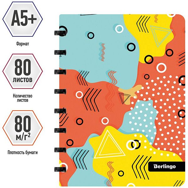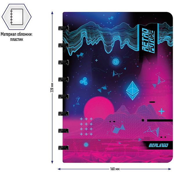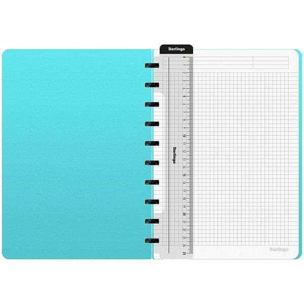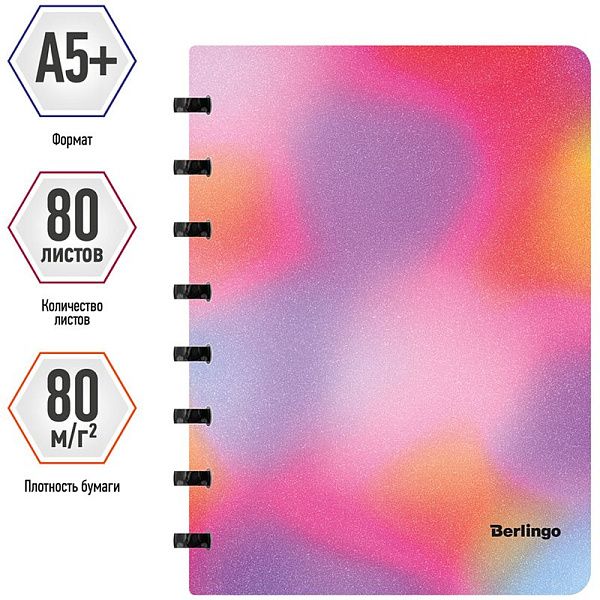 Бизнес-тетрадь А5+, 80л., Berlingo "Gradient", глиттер-эффект, клетка, на кольцах, с возм. замены блока, 80г/м2, пластик. обл. 700мкм, линейка-закл.