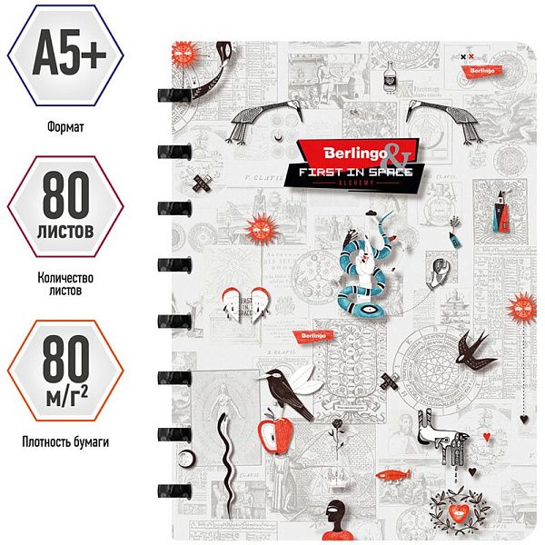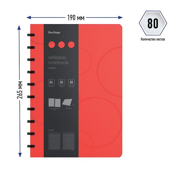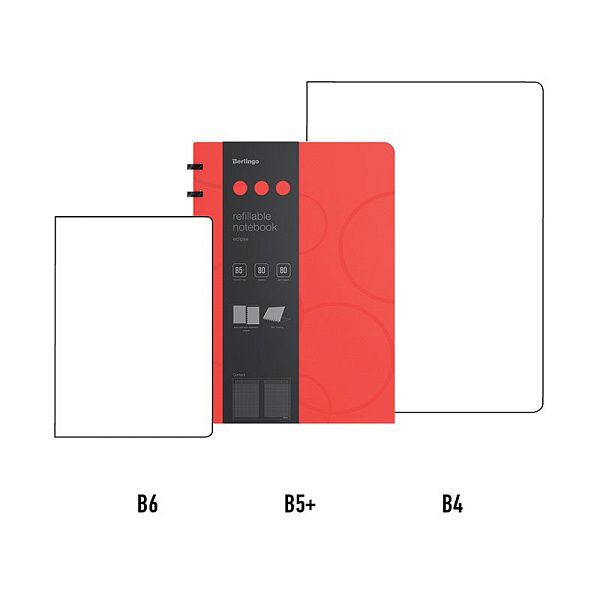 Бизнес-тетрадь В5+, 80л., Berlingo "Eclipse", клетка, на кольцах, с возм. замены блока, 80г/м2, пластик. (полифом) обложка, линейка-закладка, красная