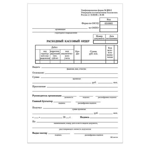 Бланк бухгалтерский, офсет, "Расходный кассовый ордер", А5 (135х195 мм), СПАЙКА 100 шт., BRAUBERG/STAFF, 130134