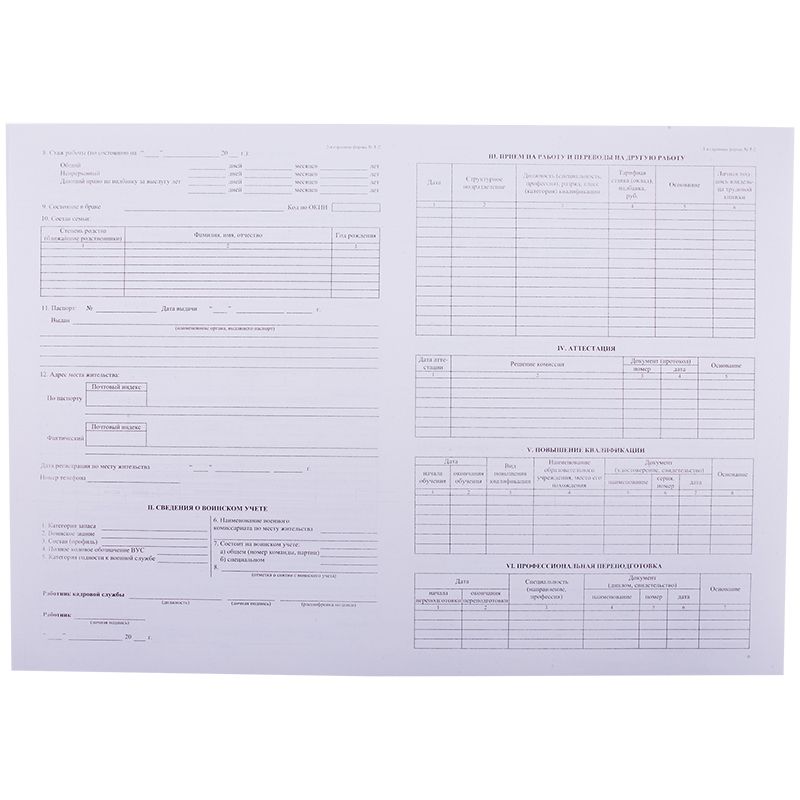 Бланк "Карточка личная" OfficeSpace, А3 (форма Т-2), 50 экз., в пленке т/у