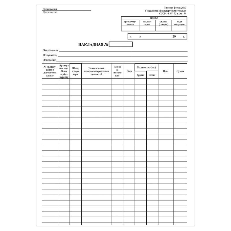 Бланк "Накладная" OfficeSpace, А4, газетка, 100 экз.