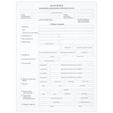 Бланк офсет "Карточка гражданина, подлежащего воинскому учету", А4, 198х275 мм, СПАЙКА, 100 шт., STAFF, 130260