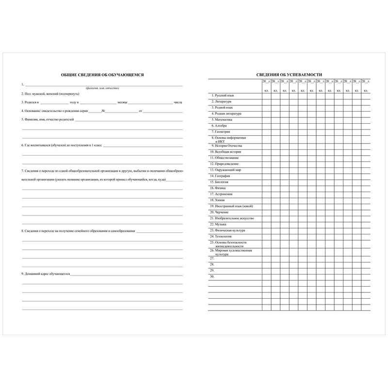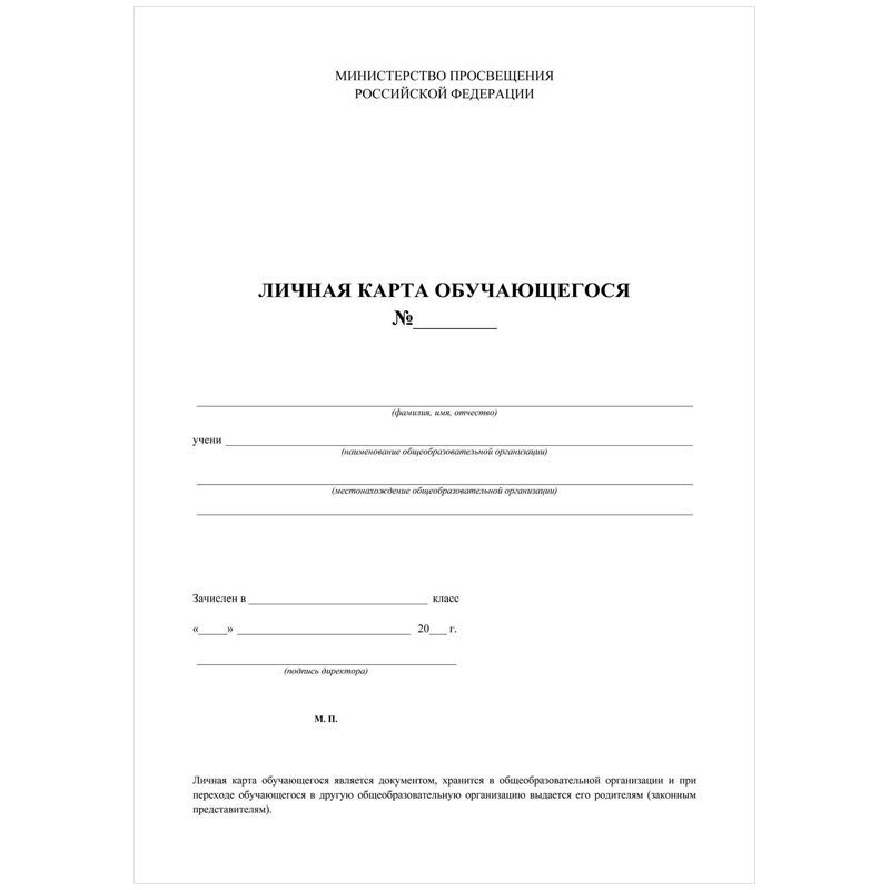 Бланк Личная карточка обучающегося А4, 2л., блок офсет
