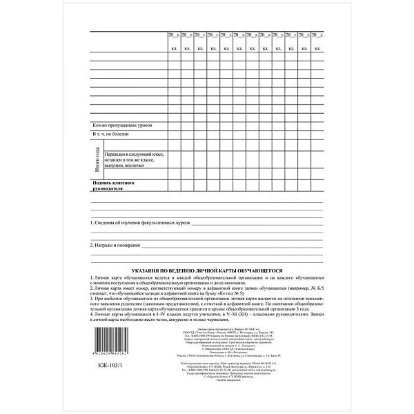 Бланк Студенческий билет OfficeSpace, для среднего профессионального образования
