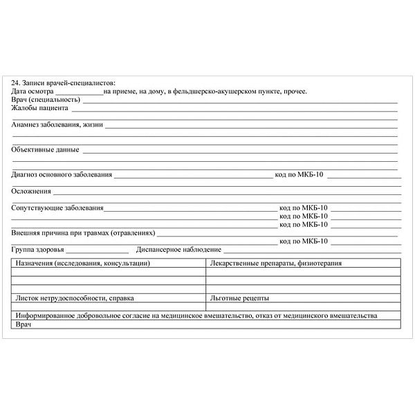 - Медицинская карта пациента, получающего помощь в амбулаторных условиях (форма 025/у).