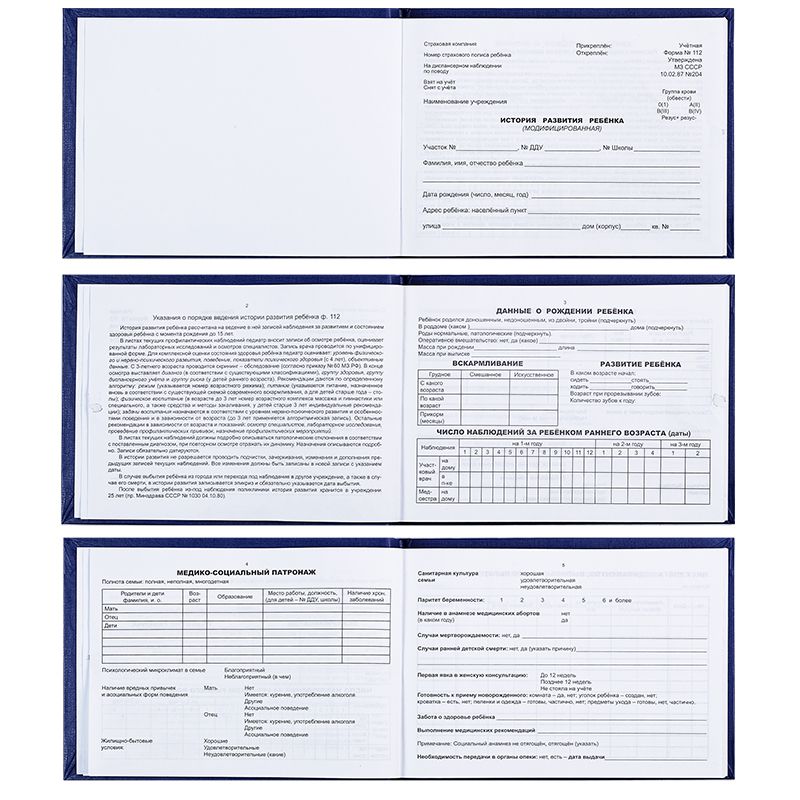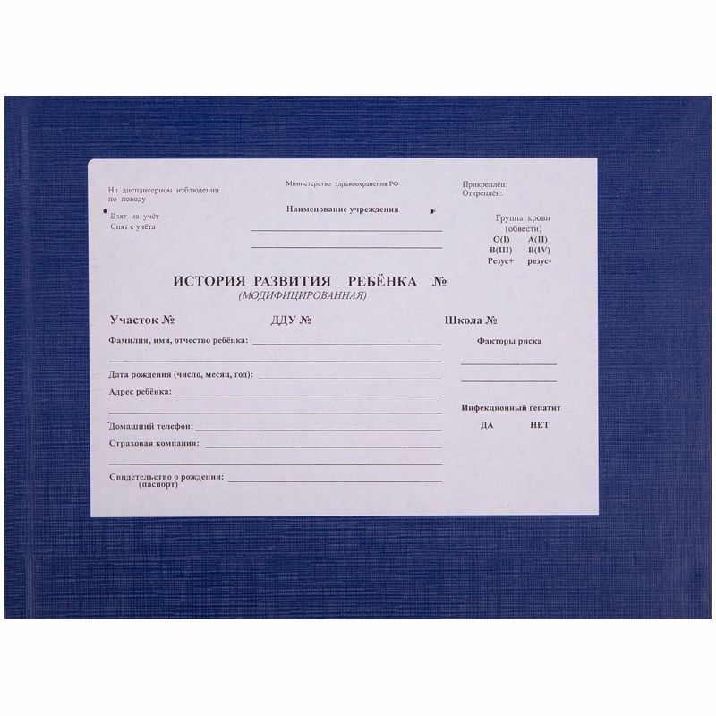 Медицинская карта история развития ребенка OfficeSpace, А5 205*150мм (ф.112), синяя, тв. обл. БВ, 196л