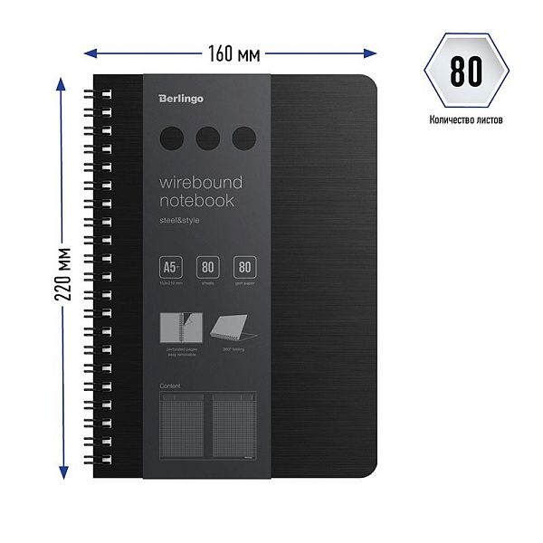 | Бизнес-тетрадь А5 на спирали | А5 | 120 | ~180 |
