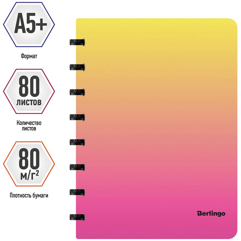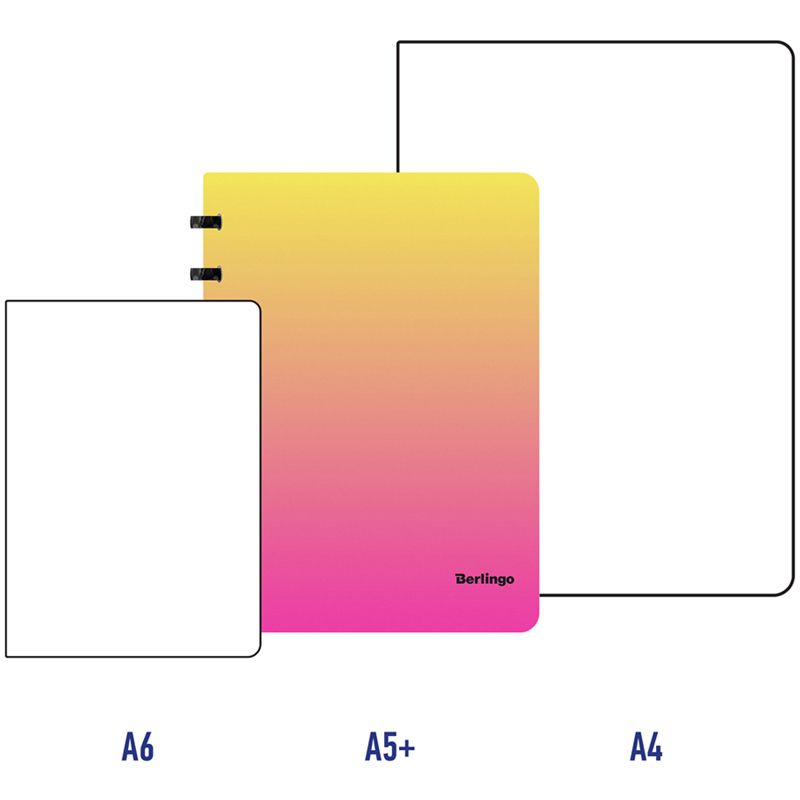 Бизнес-тетрадь А5+, 80л., Berlingo "Radiance", клетка, на кольцах, с возм. замены блока, 80г/м2, пластик. обложка 700мкм, линейка-закладка, желт./роз.