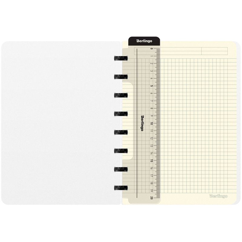 Такая бизнес-тетрадь является незаменимым инструментом для деловых людей. Увеличенная толщина обложки (700 мкм). Белый цвет внутренней поверхности. Материал обложки − полипропилен защищает внутренний блок от влаги, замятия и загрязнения, обложка устойчива к загрязнениям. Вид скрепления – стильные имиджевые черные кольца, с возможностью раскрывать тетрадь на 360⁰. Возможна замена бумажного блока и быстрая и удобная выемка/вставка листов без повреждений.