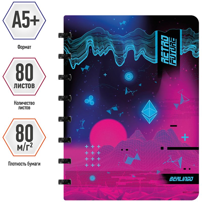 Бизнес-тетрадь А5+, 80л., Berlingo "Retro Future", клетка, на кольцах, с возм. замены блока, 80г/м2, пластик. обложка 700мкм, линейка-закладка