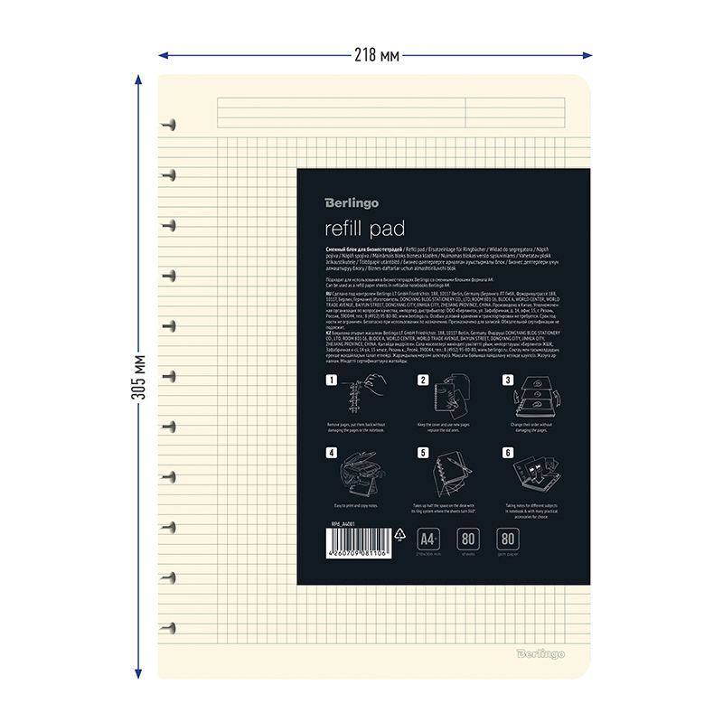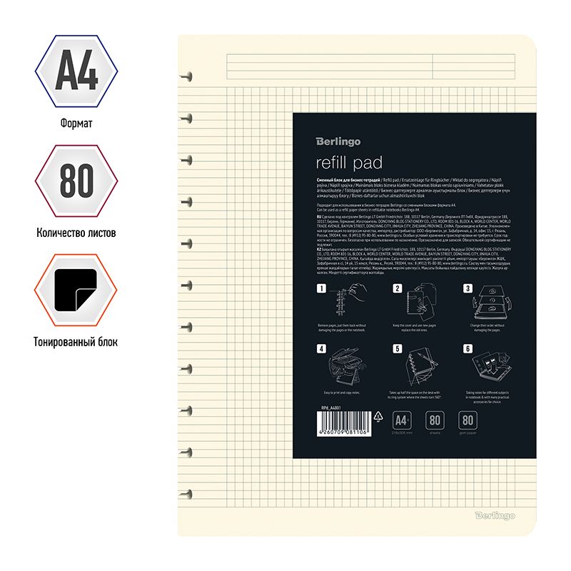Сменный блок для бизнес-тетрадей Berlingo 80л., А4, белый