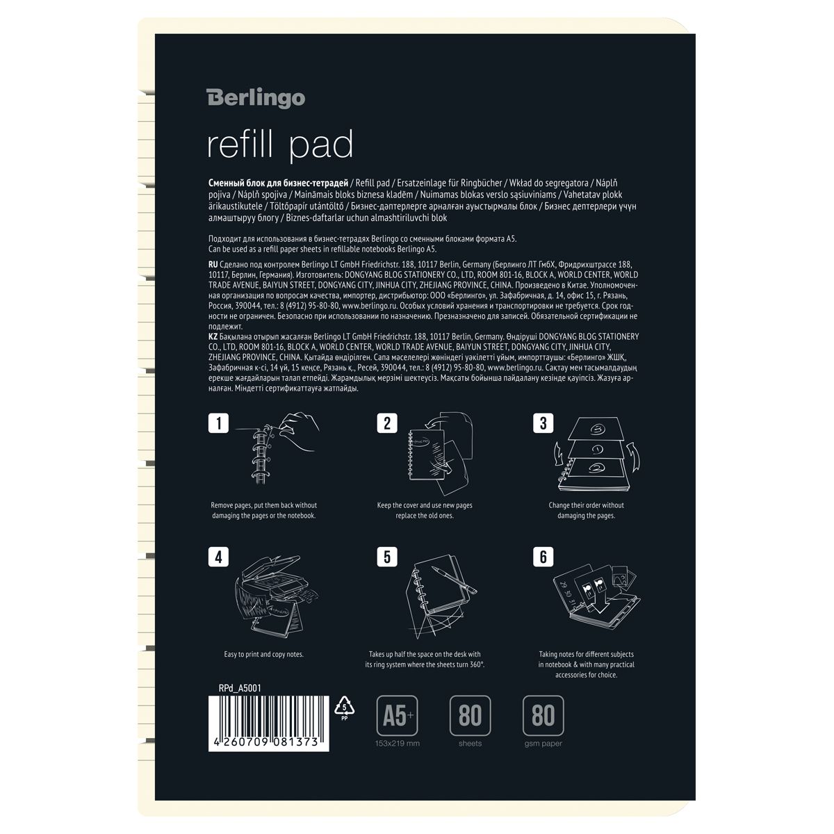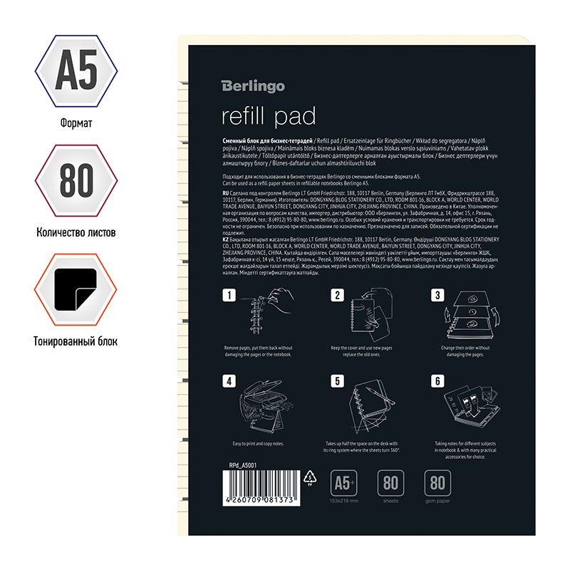 Сменный блок для бизнес-тетрадей Berlingo 80л., А5, белый