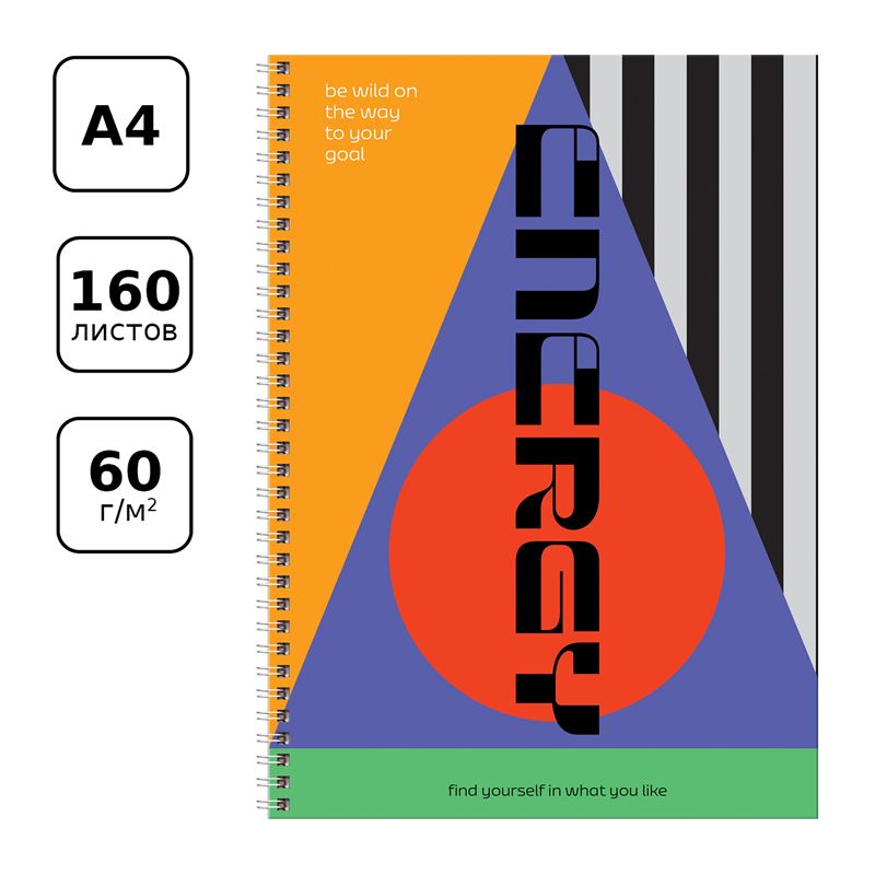 Тетрадь 160л., А4 клетка на гребне BG "Energy", глянцевая ламинация, твердая обложка