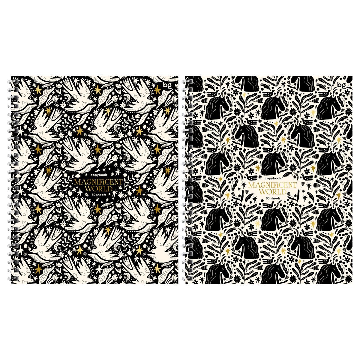 Тетрадь 80л., А5, клетка на гребне BG "Magnificent World", матовая ламинация, тиснение фольгой, твердая обложка