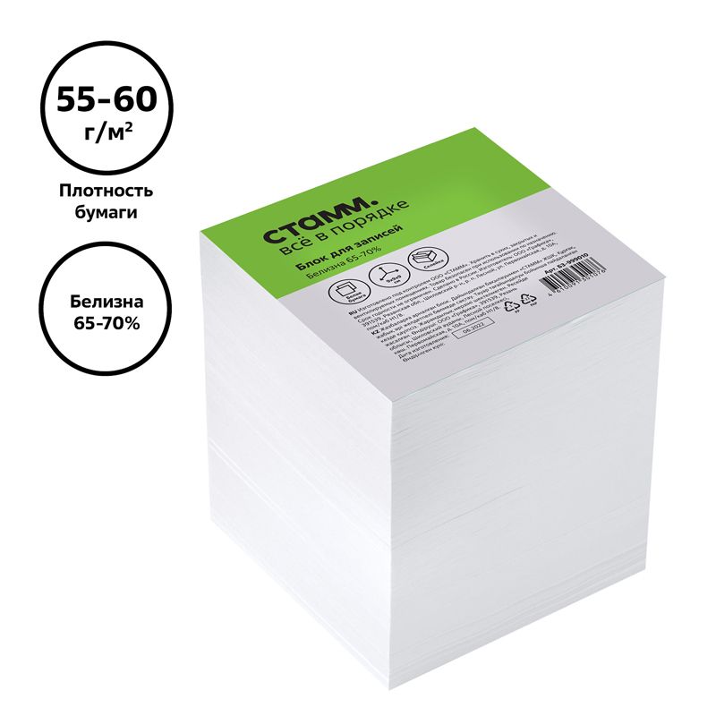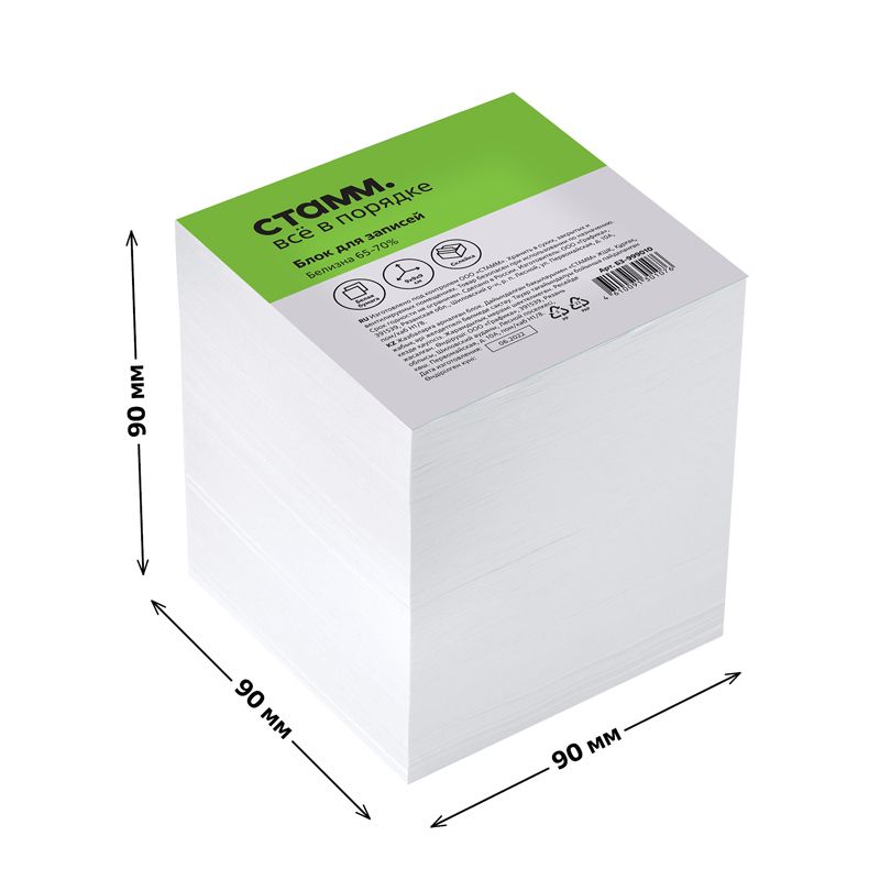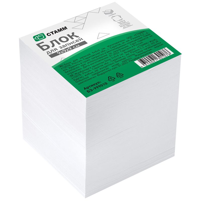 Блок для записей на склейке СТАММ, 9*9*9см, белый, белизна 65-70%