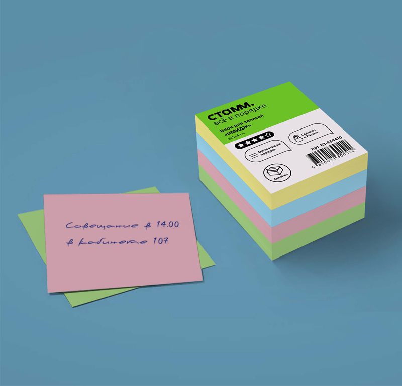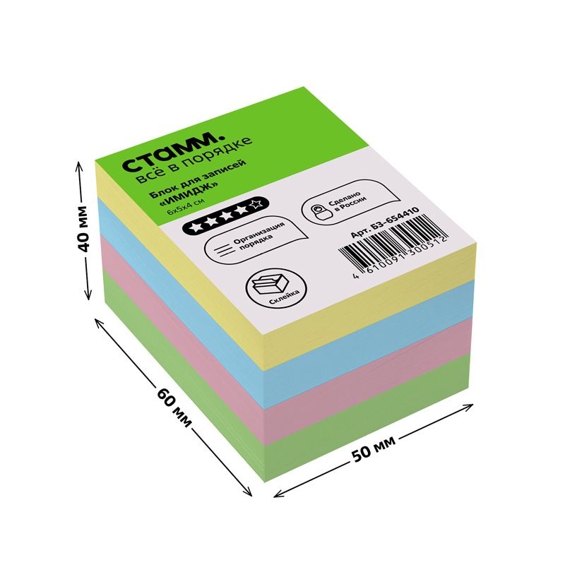 Блок для записей на склейке СТАММ "Имидж", 6*5*4см, цветной