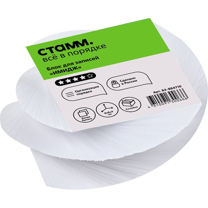 Блок для записей на склейке СТАММ "Имидж", 8*8*4см, витой, белый