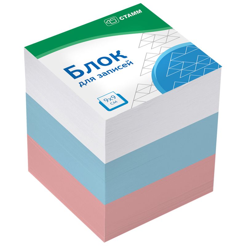 Блок для записей на склейке СТАММ "Имидж", 9*9*9см, триколор