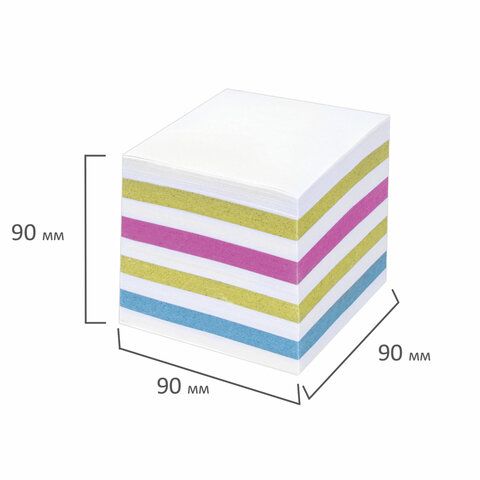 Блок для записей STAFF непроклеенный, куб 9х9х9 см, цветной, чередование с белым, 126367