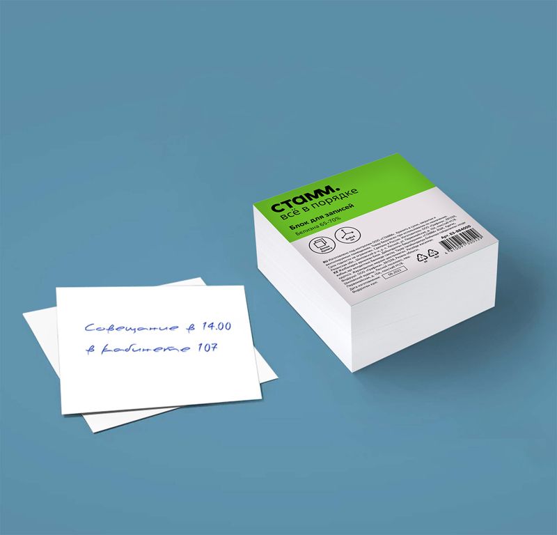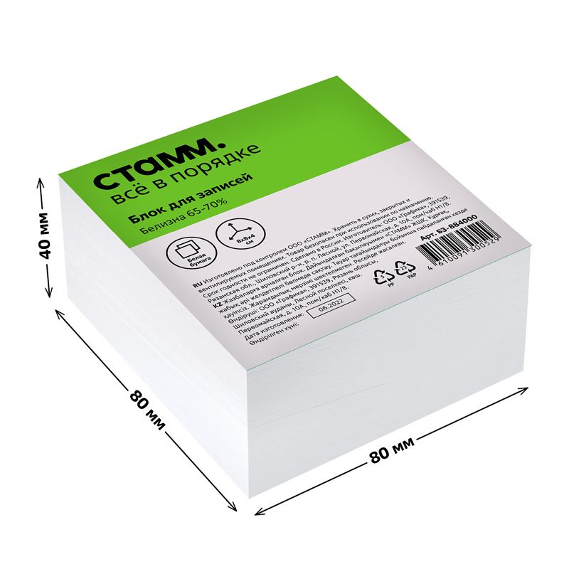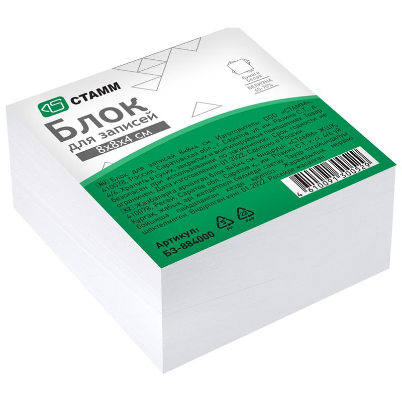 Блок для записей СТАММ, 8*8*4см, белый, белизна 65-70%