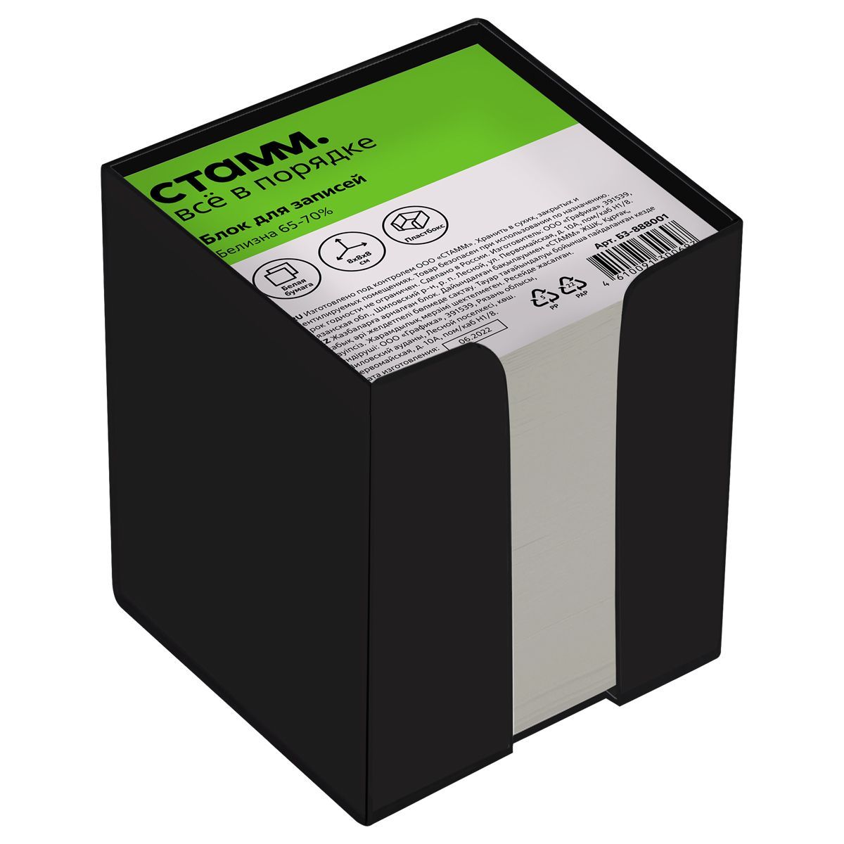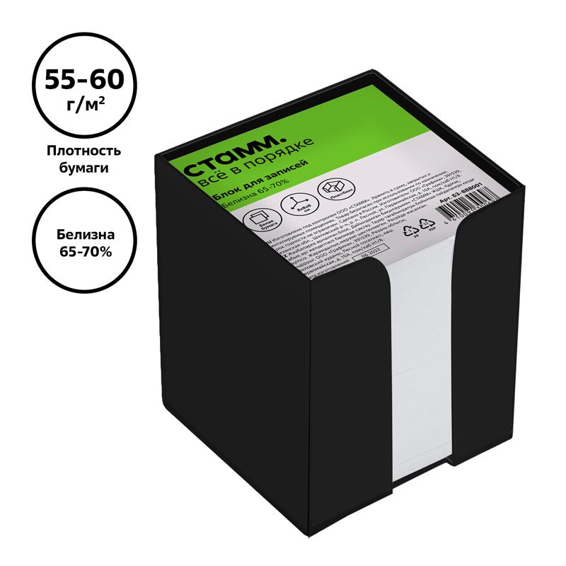 Блок для записей СТАММ, 8*8*8 см, пластиковый бокс, белый, белизна 65-70%