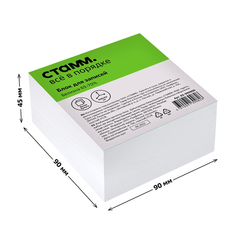 Блок для записей СТАММ, 9*9*4,5см, белый, белизна 65-70%