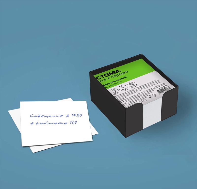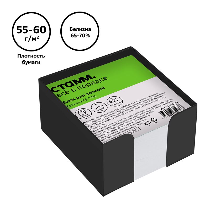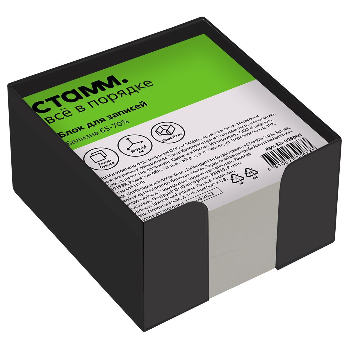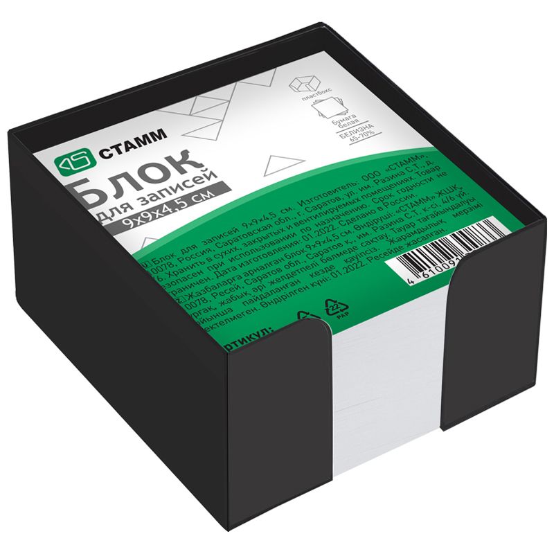 Блок для записей СТАММ, 9*9*4,5см, пластиковый бокс, белый, белизна 65-70%