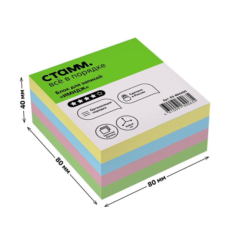 Блок для записей СТАММ "Имидж", 8*8*4см, цветной