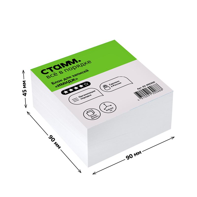 Блок для записей СТАММ "Имидж", 9*9*4,5см, белый