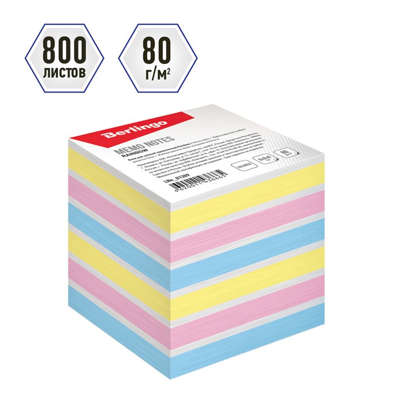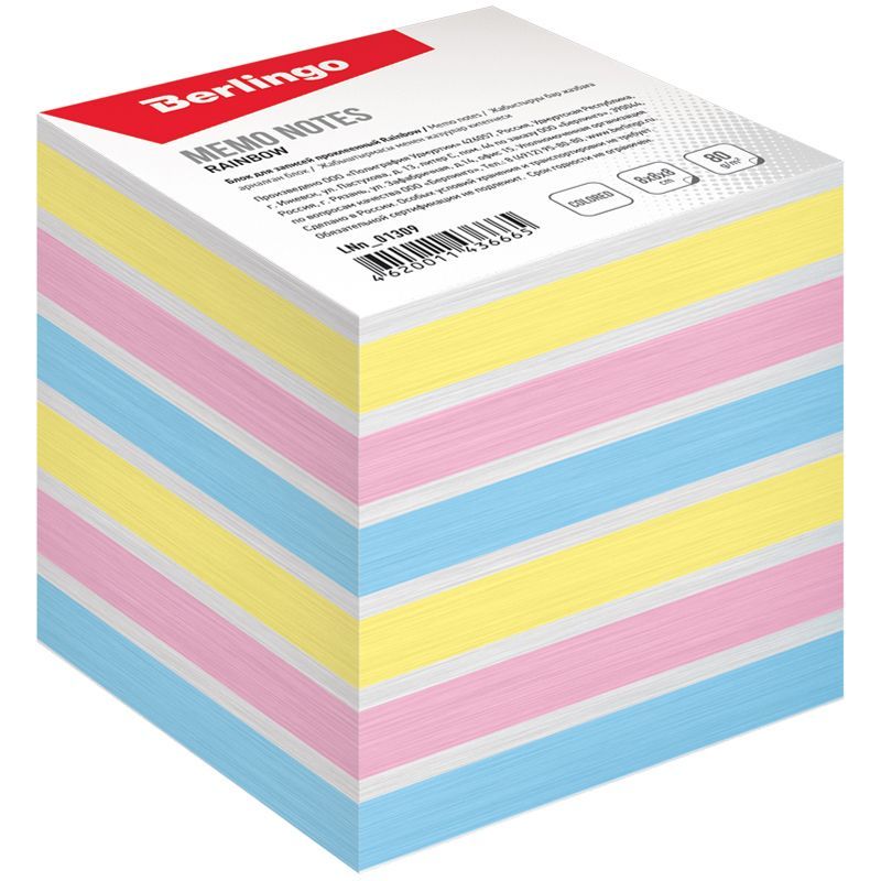 Блок для записи на склейке Berlingo "Rainbow" 8*8*8см, цветной, пастель