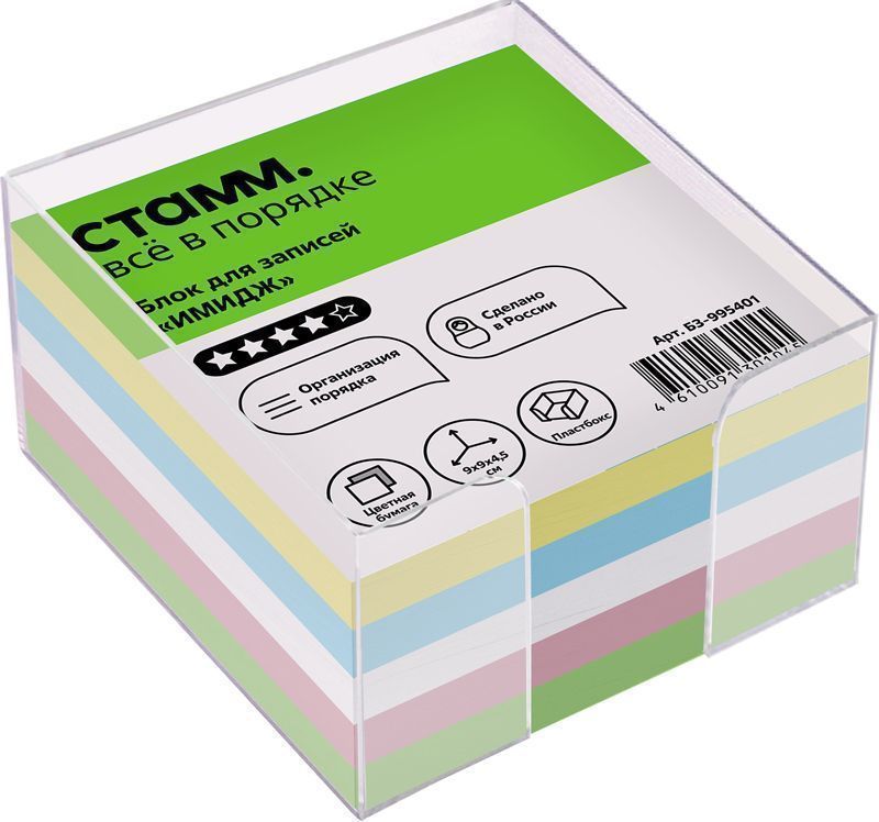 УЦЕНКА - Блок для записей СТАММ "Имидж", 9*9*4,5см, пластиковый бокс, цветной