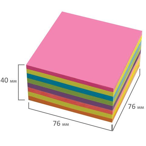 - Блок самоклеящийся 76х76 мм: 100 или 400 листов, стандартные и неоновые цвета.