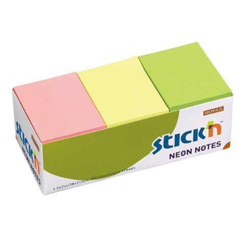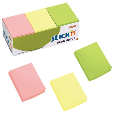 Блоки самоклеящиеся (стикеры) HOPAX, комплект 12 шт., 38х51 мм, 12х100 л., 3 цвета, неон, 21131
