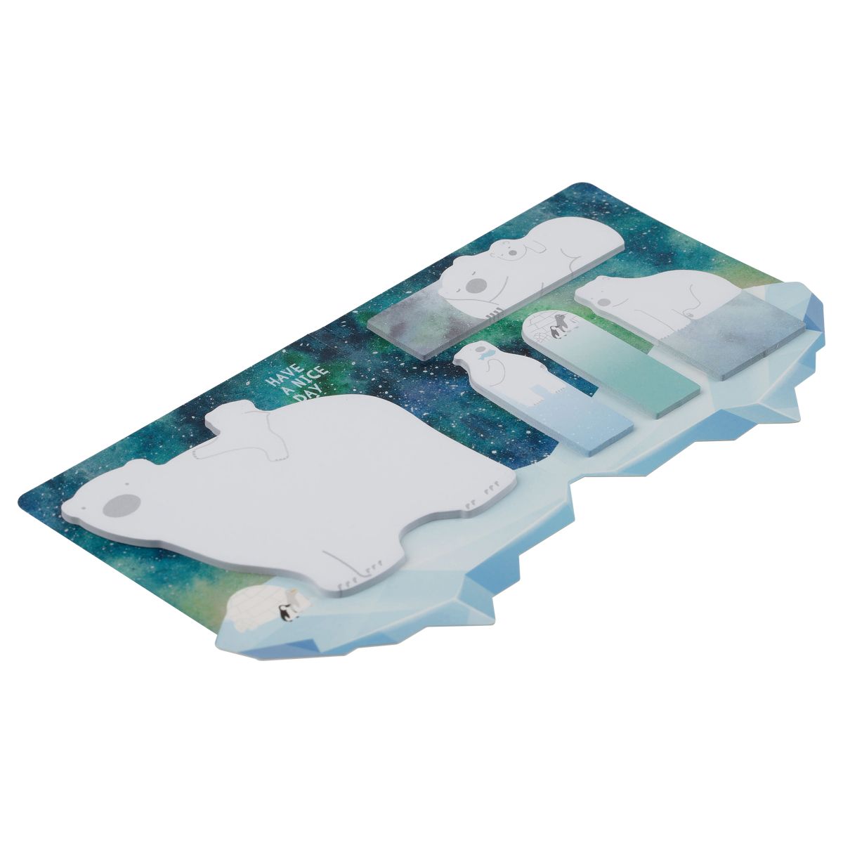 Флажки-закладки и самоклеящиеся блоки в наборе MESHU "Polar Bears", 20л*5 цветов, европодвес