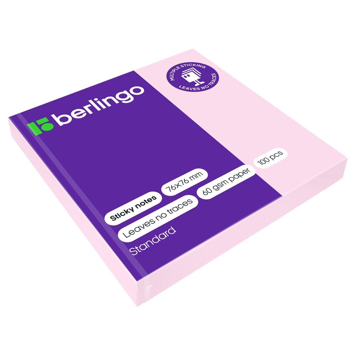 Самоклеящийся блок Berlingo "Standard", 76*76мм, 100л., розовый