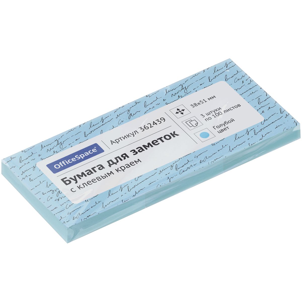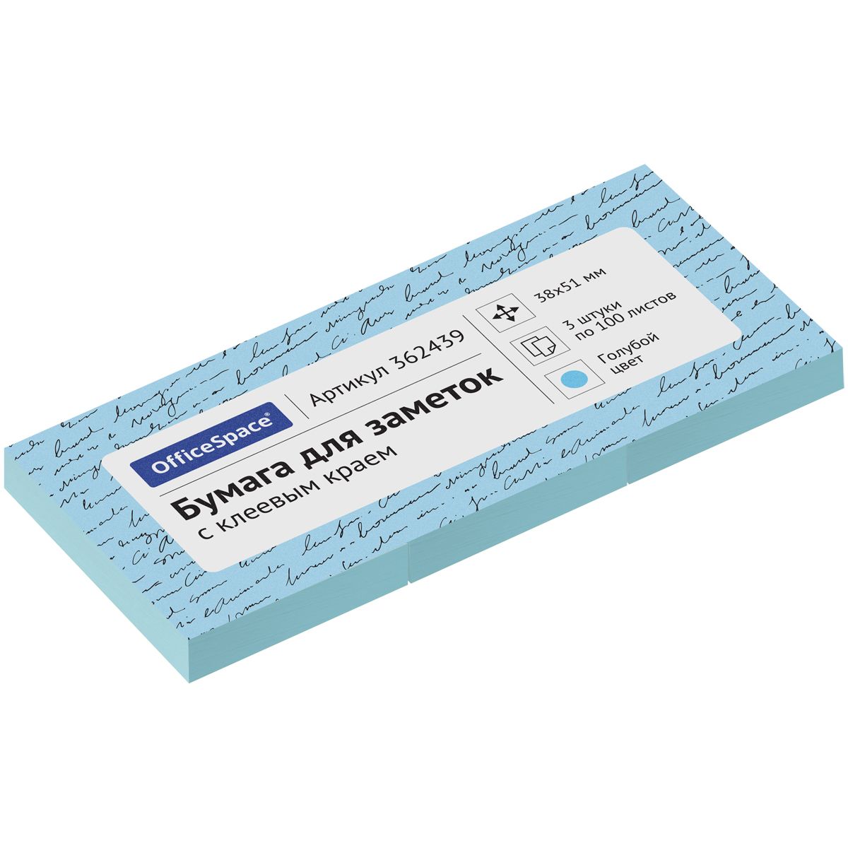 Самоклеящийся блок OfficeSpace, 38*51мм, 3 блока по 100л., голубая пастель
