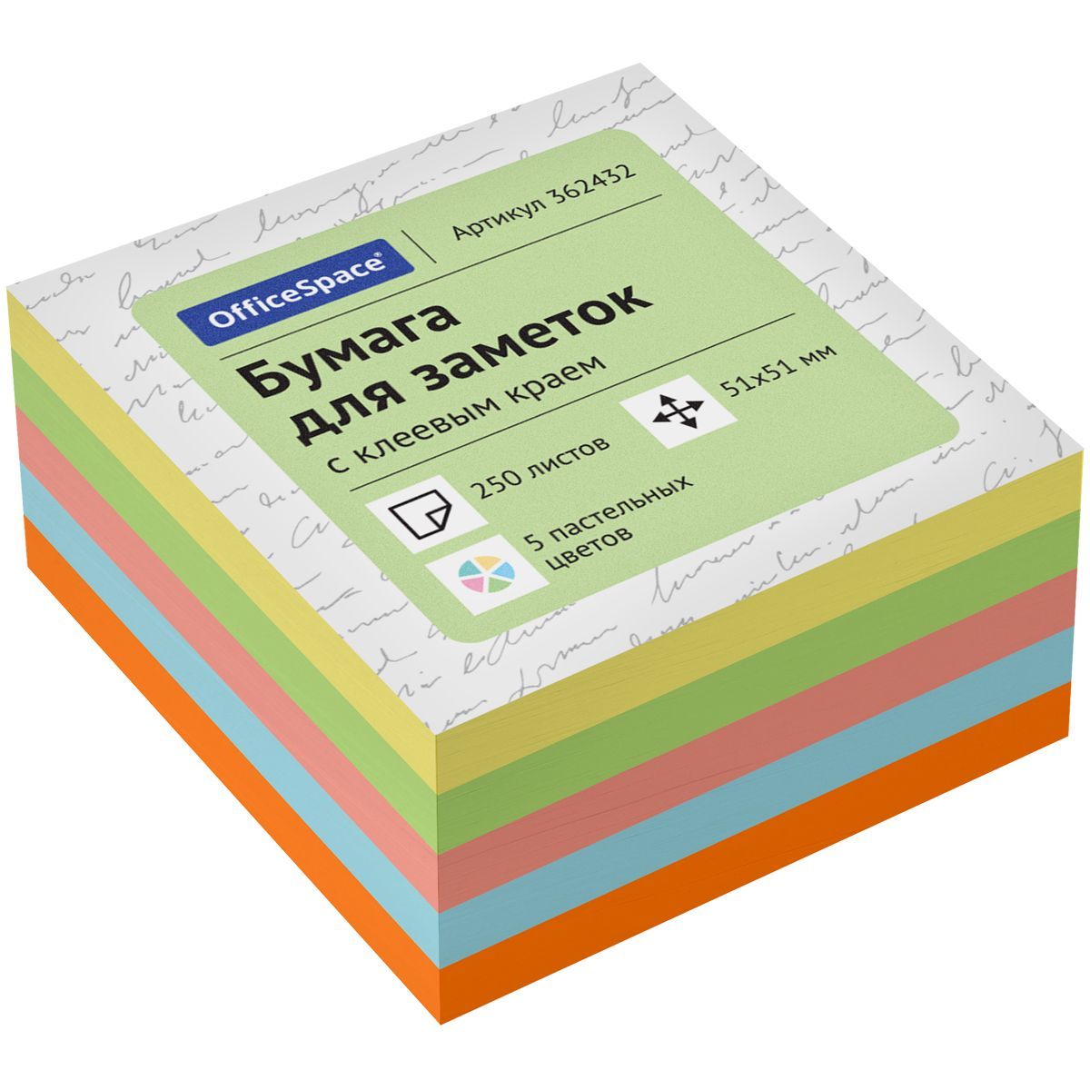 Самоклеящийся блок OfficeSpace, 51*51мм, 250л., 5 пастельных цветов