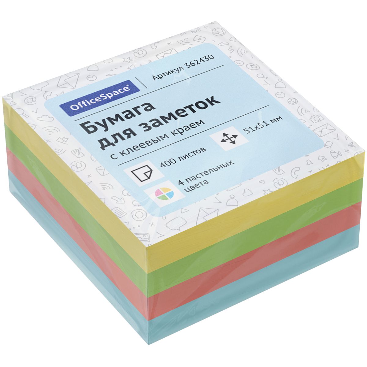 Самоклеящийся блок OfficeSpace, 51*51мм, 400л., 4 пастельных цвета