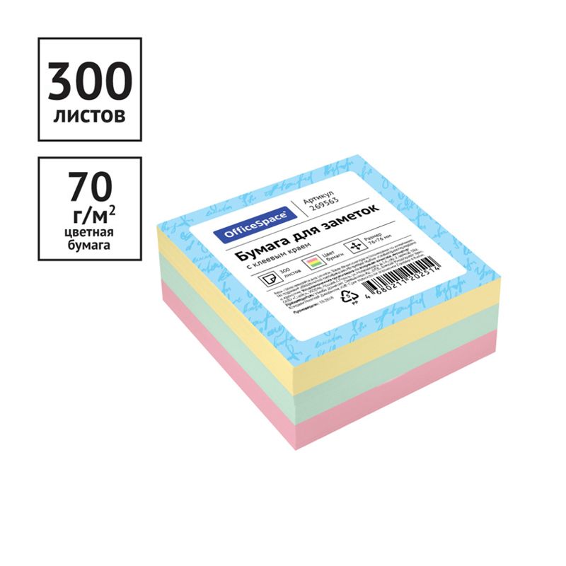 Самоклеящийся блок OfficeSpace 76*76мм, 300л., 3 цвета